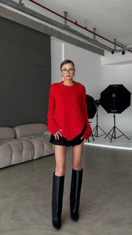 Cross Crew Neck Basic Red Sweater