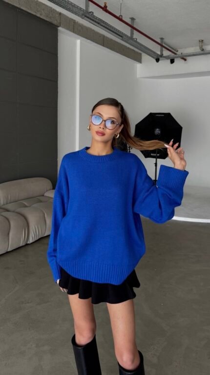 Cross Crew Neck Basic Sax Blue Sweater