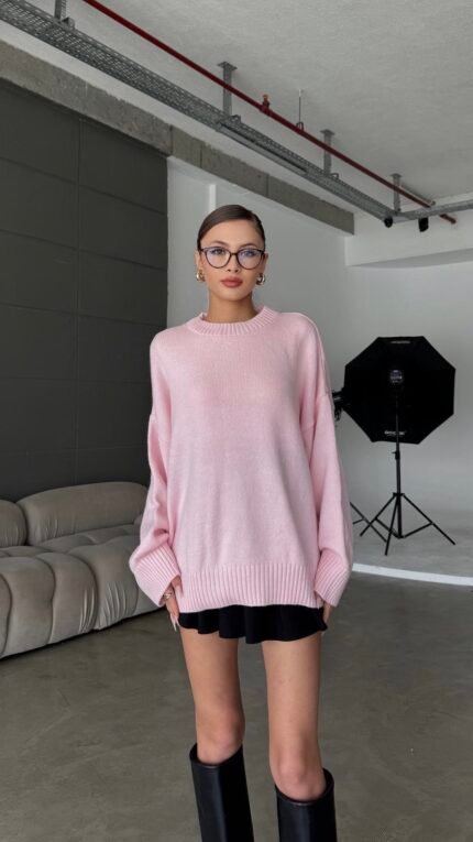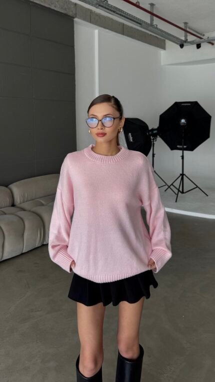 Cross Crew Neck Basic Powder Pink Sweater