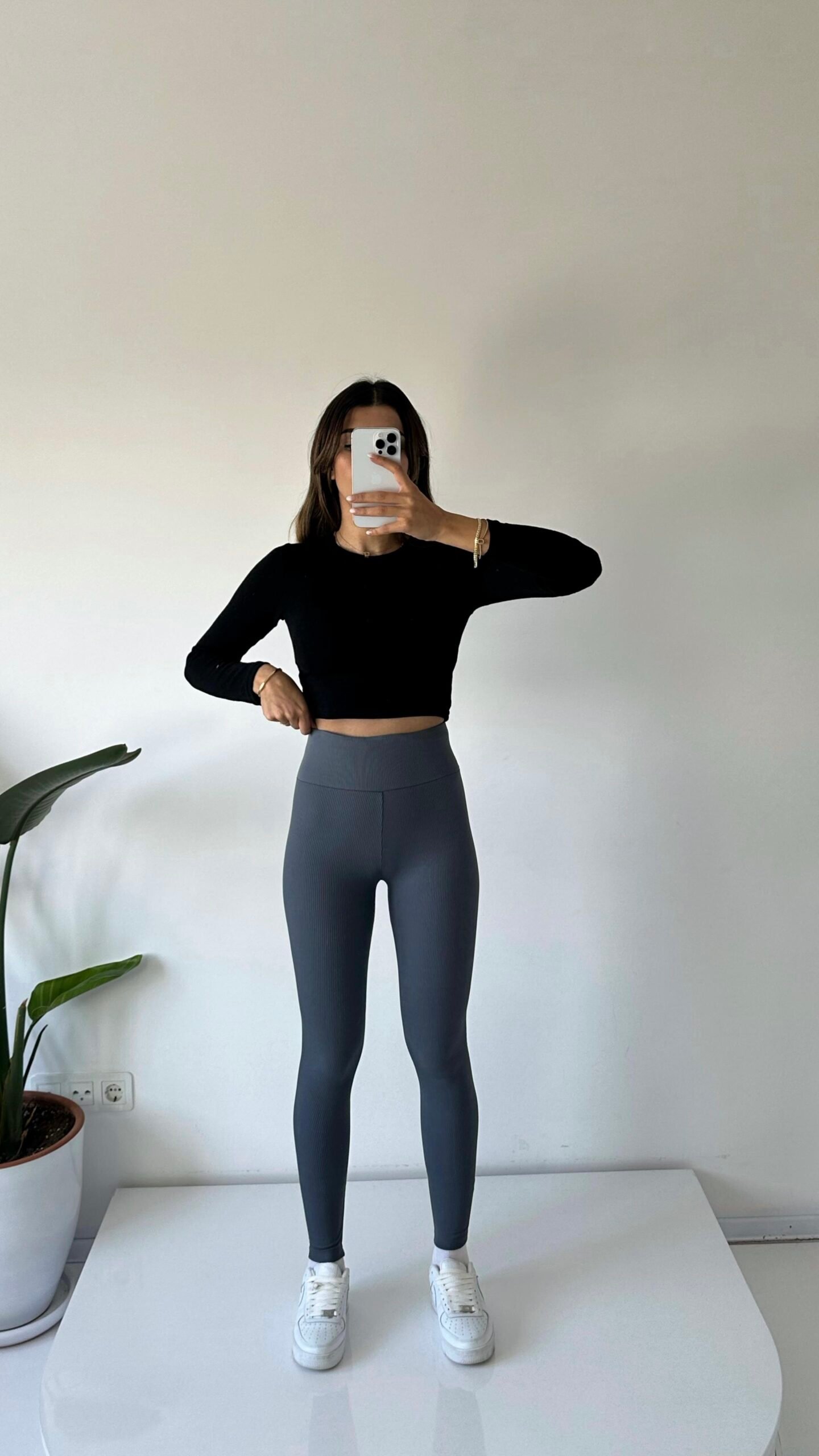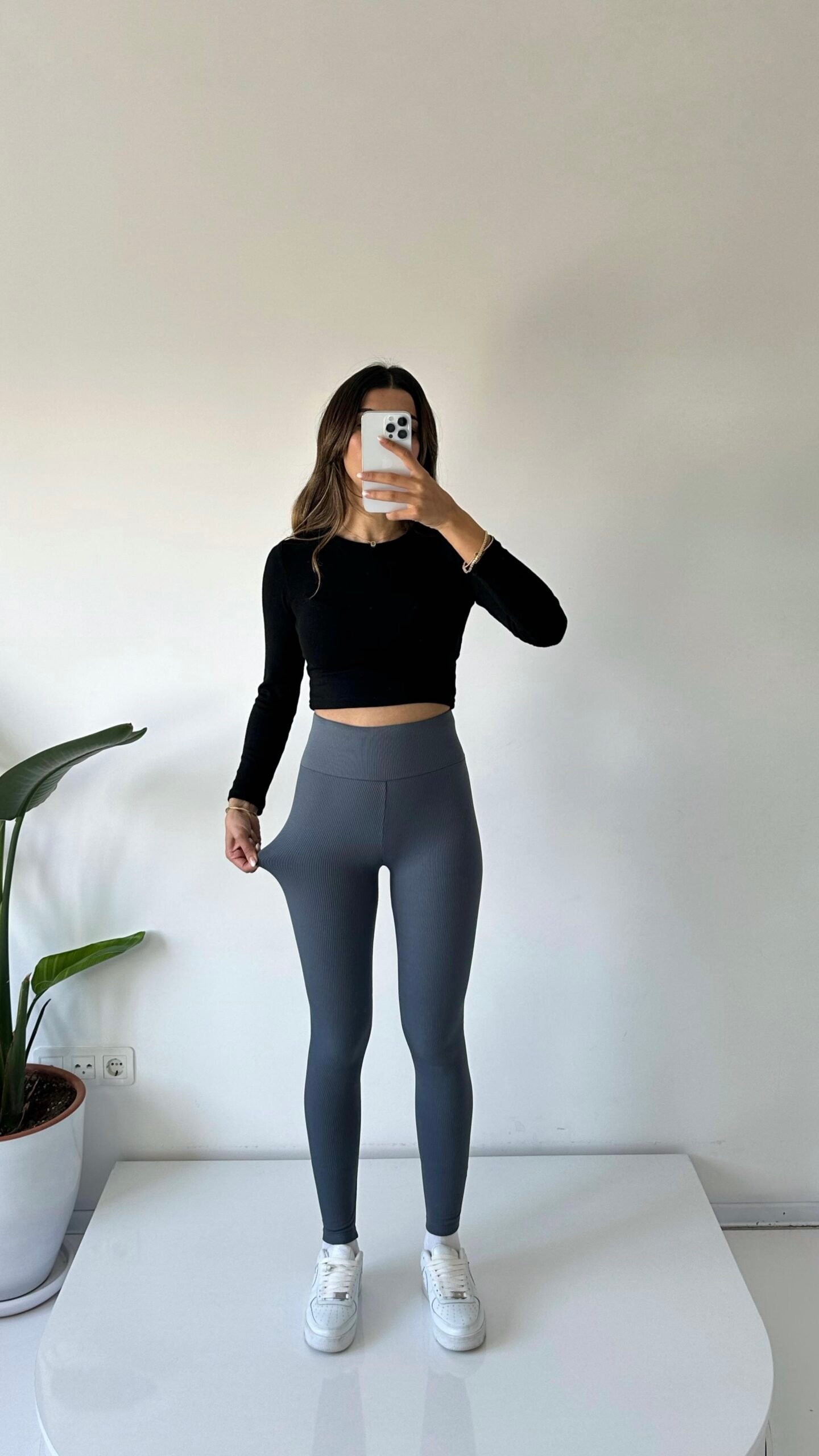 Collants côtelés gris Fonce