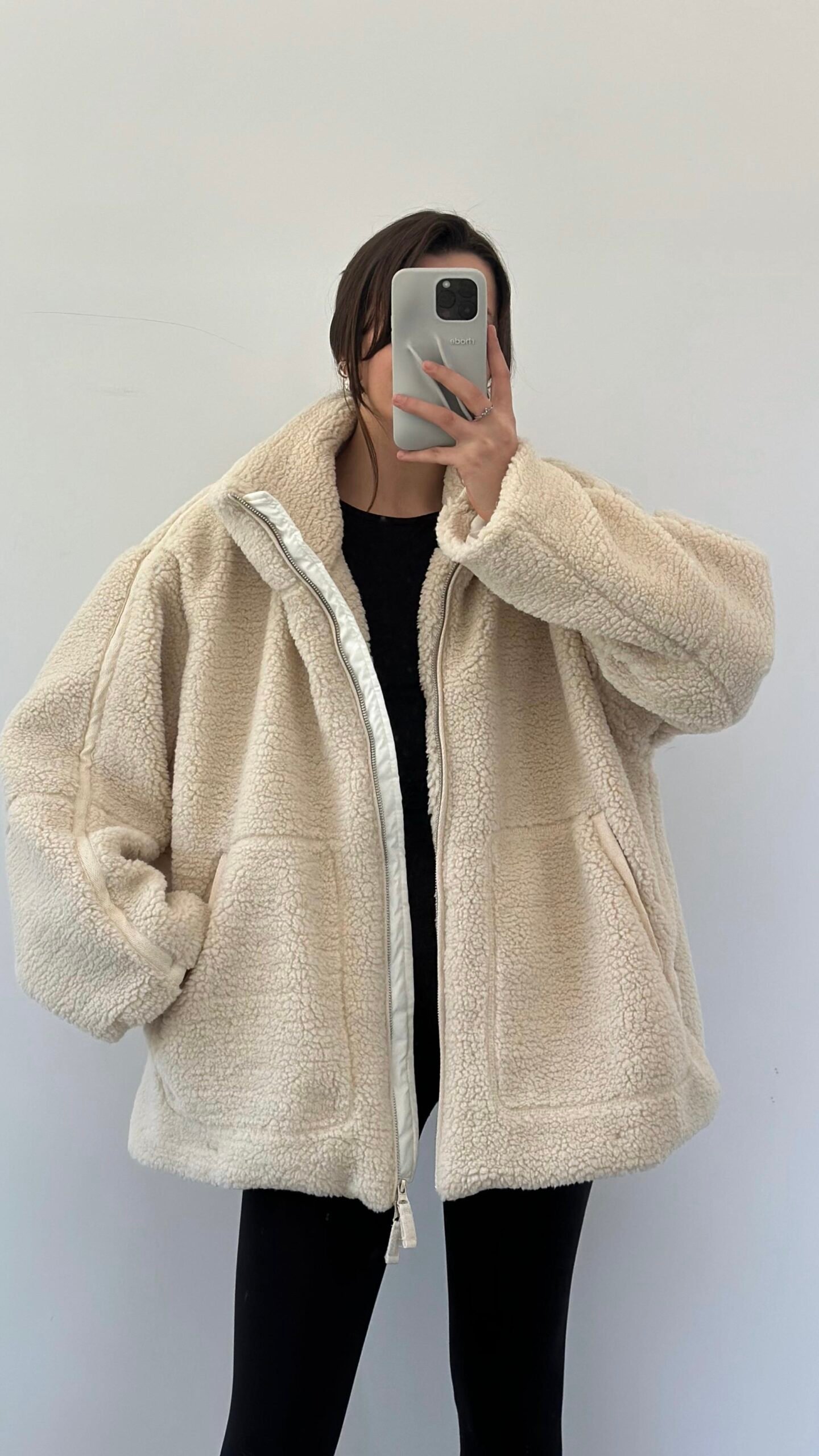 Manteau beige en peluche à fermeture éclair Cesila