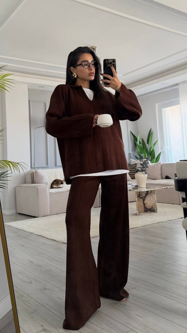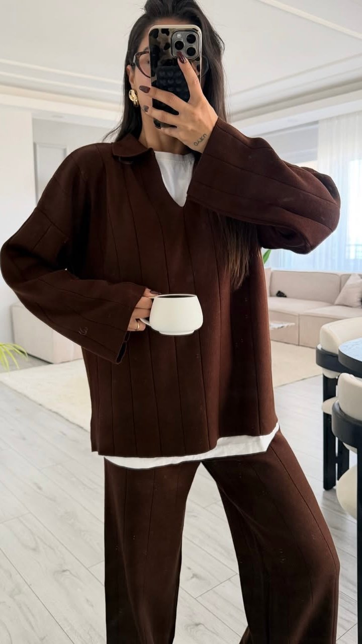 Relax Polo Collar Knitwear Set Brown